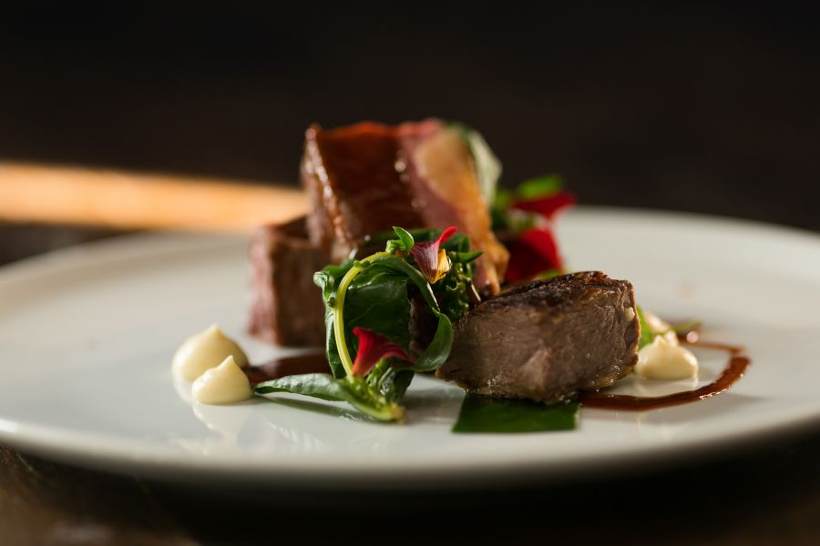 Inside, everything encourages lingering. The interiors hold a turn-of-the-century elegance, softened by warmth and familiarity. A fire glows in the library, where books wait patiently and conversation drops to a murmur. Candlelight flickers through the evening, not as theatre, but as habit. Each of the 16 rooms has its own character, some dressed with four-poster beds, all designed to feel comforting rather than formal. It’s the sort of place where sleep comes easily and mornings are unhurried by default. Life at The Mustard Seed revolves gently around the table. Dinner here is not something to rush, nor something to document—it’s something to experience. The restaurant serves a set four-course menu shaped by the seasons and by what is growing just outside the door. Produce from the organic gardens, orchard, and herb beds makes its way naturally onto the plate, giving each meal a sense of connection to the land. Candlelit and quietly convivial, dining here feels intimate and reassuring, a shared moment rather than a performance.